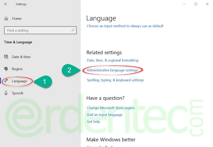 - Dil ayarları ekranında iken, Yönetici dil ayarları bağlantısına tıklayın.
